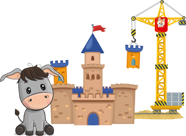 И началась тут великая стройка, какой до того времени лес ещё не видывал. Специалисты подобрались действительно хорошие, каждый зверь знал своё дело: слоны материалы привозили, бригада бобров кирпич клала, мартышки доски прибивали, Бельчонок гвозди подавал. И вроде бы дело спорилось, и особо Осёл в работу не влезал, только ходил вокруг стройки да наблюдал, нет ли у кого проблем. А вот если видел проблемы у кого-то, вот тогда подходил да сам лично и помогал. Где гвоздь придержит, где-то бревно подтолкнёт, а местами и мусор в сторону оттащит, чтобы не мешало ничего строительству. И все звери, которые в стройке участвовали, любили Осла и очень его уважали.