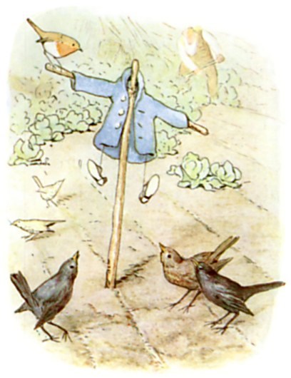 Mr. McGregor hung up the little jacket and the shoes for a scare-crow to frighten the blackbirds.