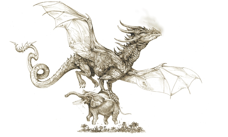 Сначала длинные крылья понесли дракона на юг, где простираются плодородные и богатые дичью земли. Каждая его вылазка в эти неизведанные места влекла за собой страшные битвы с огнедышащими сородичами, яростно защищающими свою территорию. На его почерневшем, израненном брюшке до сих пор сохранились следы ожогов.
