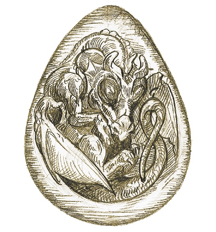 Большинство драконов откладывают яйца. Самка обычно приносит одно яйцо раз в столетие, хотя иногда, очень редко, бывает и три яйца за век. Место кладки, как правило, располагается в привычной среде обитания (морская или обычная пещера или даже ледник…). Высиживание может длиться больше года. Этот процесс требует постоянного присутствия самки – она охраняет и греет яйцо. Но температура в гнезде не должна превышать тысячу градусов.