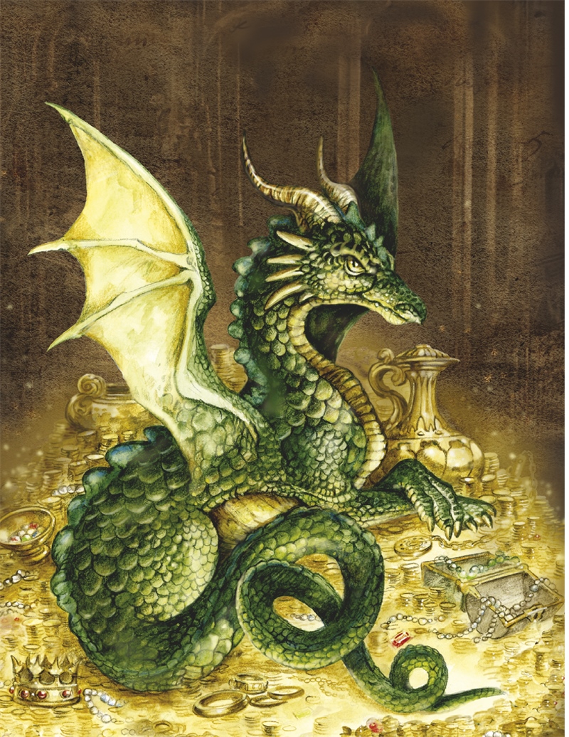 Человек проснулся от испуга. Сон его был беспокойным. Его завораживало это странное место. Неужели пещера, залитая ярким светом, – не прекрасный сон, от которого он никак не может пробудиться? Неужели всё это настоящее? Он встал и прошёл в глубь пещеры. Она казалась высокой и широкой. Приглушённое эхо сопровождало каждый его шаг. Постепенно его глаза привыкали к яркому свету. И тогда он увидел то, что его разум отказывался воспринимать. В подземной комнате хранилось сокровище: груда золота, драгоценных камней и ценных предметов, на которой лежал… спящий дракон!