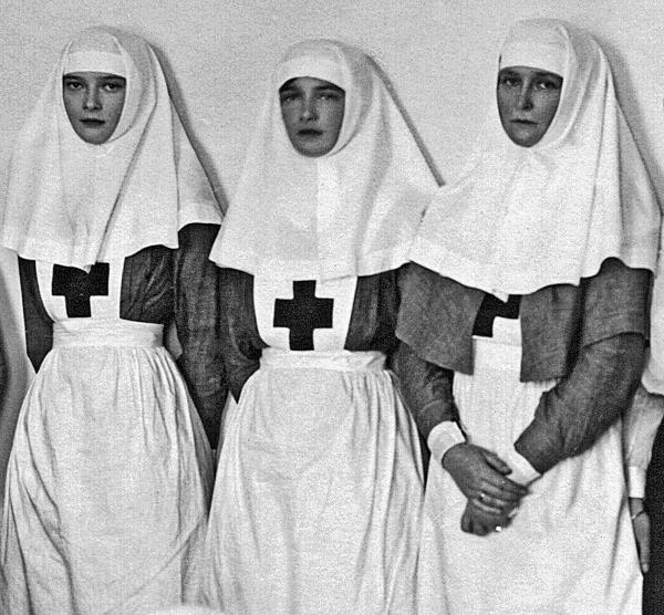 Императрица Александра Феодоровна и великие княжны Ольга и Татьяна в госпитале