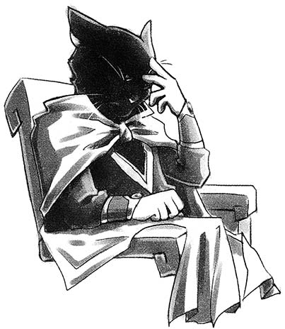 Внезапно в пещеру ворвался пятнистый кот и закричал, что ситуация на границе критическая, следует незамедлительно сообщить об этом лично королю. Чернохвост поднялся, тут же вытащил гонца наружу и сердито прошипел: