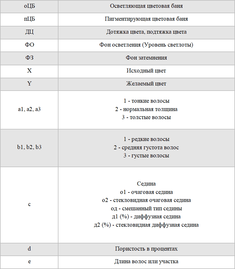 Формула необходима для краткой записи диагностического листа и рецепта окрашивания.