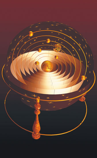 Согласно геоцентрическим представлениям Аристотеля Земля неподвижна, а планеты – Меркурий, Венера, Марс, Юпитер и Сатурн, – а также Солнце и Луна движутся вокруг Земли по круглым орбитам. Кроме того, Аристотель считал, что звезды неподвижно закреплены на небесной сфере, и по его масштабам Вселенной получалось, что расположена эта звездная сфера сразу за орбитой Сатурна. Аристотель был уверен, что все движение происходит по идеальным окружностям, и подвел надежную базу под то, что Земля неподвижна. Ведь если бросить камень с вершины высокой башни, он упадет прямо вниз. Он не полетит на запад, как можно было бы ожидать, если бы Земля вращалась с запада на восток (Аристотель не учитывал, что сам камень может участвовать во вращении Земли). В попытке примирить физику с метафизикой Аристотель выдвинул гипотезу «перводвигателя»: он считал, что за наблюдаемым движением звезд на небесной сфере стоит какая-то загадочная сила. Эту модель Вселенной приветствовали и приняли богословы, которые зачастую утверждали, что «перводвигатели» – это ангелы, поэтому представления Аристотеля не теряли актуальности на протяжении столетий. Многие современные исследователи считают, что из-за того, что религиозные власти повсеместно приняли теорию Аристотеля, сильно замедлился научный прогресс: оспорить представления Аристотеля значило пойти против самой церкви.