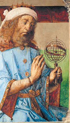 Птолемей с армиллярной сферой. Птолемея часто путали с египетскими фараонами и поэтому изображали с короной на голове.