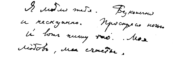 Я люблю тебя. Бесконечно и несказанно. Проснулся ночью и вот пишу это. Моя любовь, мое счастье.