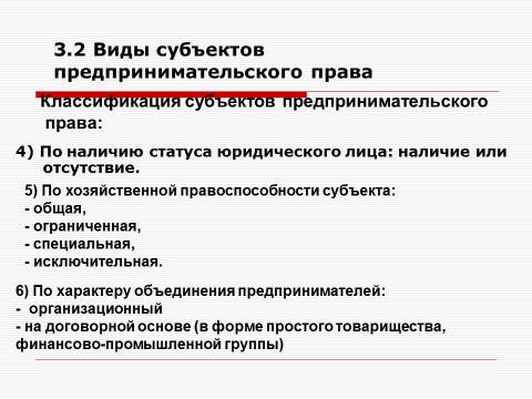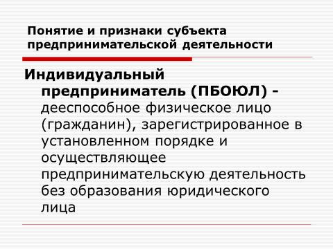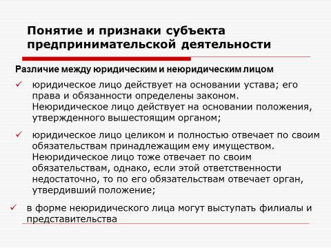 Субъекты предпринимательской деятельности. Лекция в слайдах, тестах и ответах