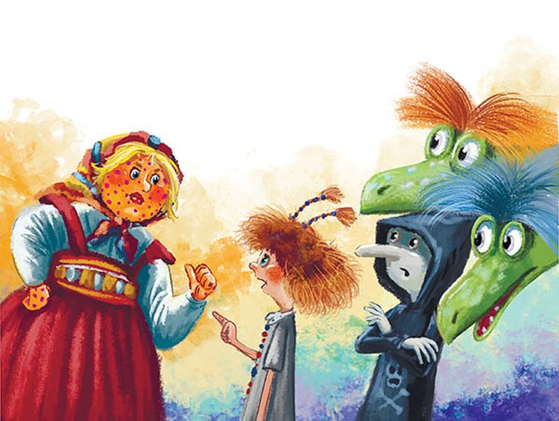 Тут все окончательно проснулись и Хаврошу осматривать вместе с Софочкой бросились. А там было на что посмотреть. Была кожа у Хавроньи Крошкиной раньше молочно-белая, да на щеках румяная, а стала оранжевая, как апельсин, ещё и в лиловую крапинку.