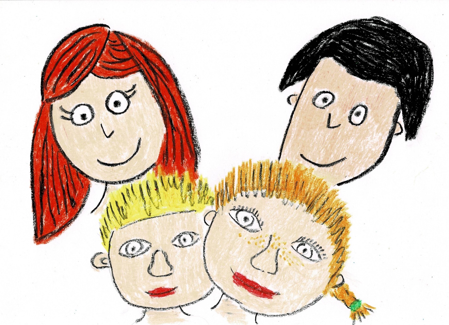 Как вы уже поняли, зовут меня Наташа. Но все называют меня Ната. Мне 7 лет. У меня есть мама, папа и младший братик. Наша семья выглядит примерно так (рисовать я тоже начала недавно, если не считать детские каляки-маляки, поэтому не судите строго):