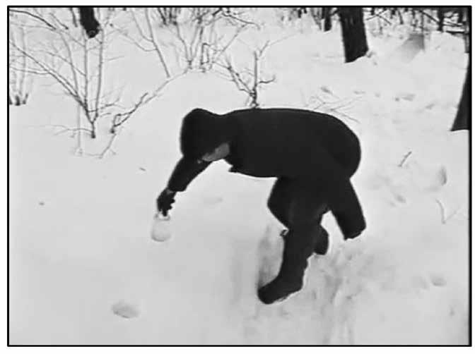 Местные жители-охотники берут просо и рассыпают его как вокруг лунок, так и в сами лунки. Прилетают куропатки и начинают собирать корм. Когда зерна вокруг лунок собраны, они видят корм внутри и прыгают туда. Обратно вылезти кеклики уже не могут. Замерзают там. На следующий день птицеловы приходят и собирают куропаток. Вот такая неторопливая охота без единого выстрела. Через одну минуту Илья Новиков совершенно правильно объясняет суть изощренного северного капкана.
