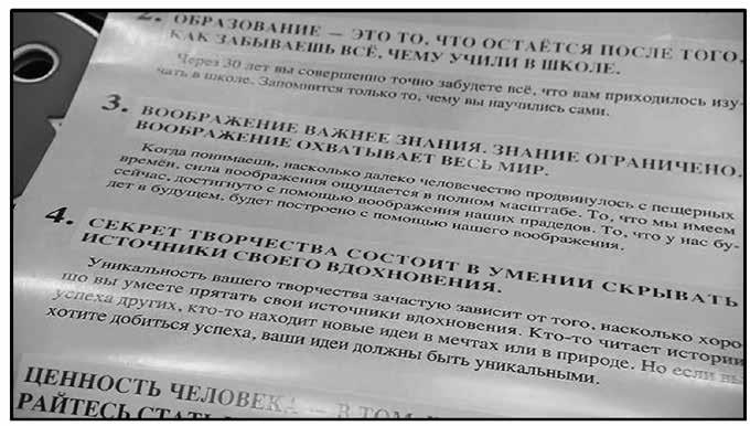Вопрос 7. Внимание, золотые правила Эйнштейна! Перечислены девять из десяти правил, которые Альберт Эйнштейн рекомендовал использовать в повседневной жизни (рис. 1.5). Тут есть и привычные нам «Никогда не ошибается тот, кто ничего не делает» и забавные «Образование – это то, что остается после того, как забываешь все, чему учили в школе». В этом списке ведущий нашел и мысль, которую наивно считал своей, – «Секрет творчества состоит в умении скрывать источники своего вдохновения» и т. д. Десятое правило мы от вас спрятали – оно любимое у телезрительницы. Назовите это правило.