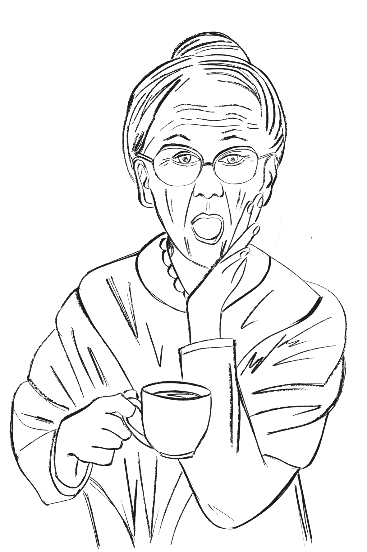 (Бабушка успокаивается и уходит в комнату к дедушке.)