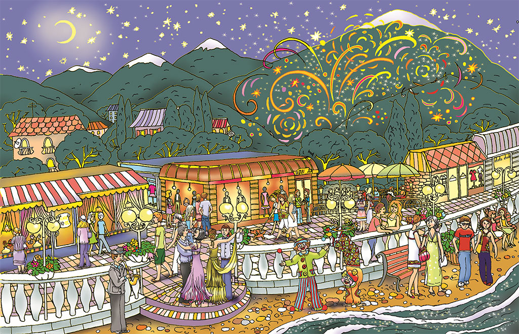 Над ликующей набережной время от времени вспыхивал фейерверк, вызывая восхищённые возгласы толпы. Лишь далеко за полночь шум стихал, и город засыпал сладким сном.