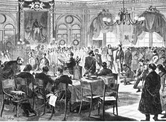 Измерение роста поступающих на военную службу в Зимнем дворце