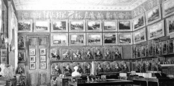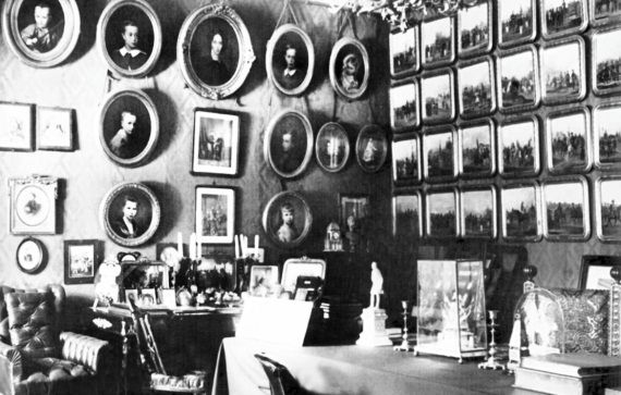 Кабинет Александра III в Александровском дворце находился почти напротив кабинета Николая I. Два окна кабинета выходили в сад Александровского дворца59. До нас дошли описания этого кабинета и его фотографии, поскольку его интерьер сохранялся и после 1917 г.