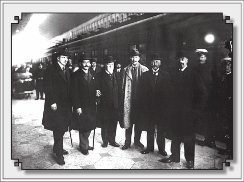 Для начала взглянем на архивный снимок. На нем шестеро думских деятелей на перроне вокзала – депутация, по какому-то случаю командированная в Париж. Надо заметить, петербургские гласные очень любили фотографироваться; сохранилось немало снимков, где они и в группе, и в одиночку, и в таком костюме, и в этаком… Уже по фотографии можно судить о том, из кого Дума состояла. А ежегодно издававшиеся справочные книжки по санкт-петербургскому городскому общественному управлению с точностью информируют о социальном положении депутатов: генералы, графы, советники разных рангов, купцы, присяжные поверенные… На 160 думцев 1909 года только два, что называется, простолюдина: Ермил Васильев да Яков Мешков, названные ремесленниками. Оба, надо полагать, были думской достопримечательностью, сидя в ней бессменно, первый с 1898 года, а второй с 1893-го. Между прочим, в этих справочниках не встретится нам ни одного женского имени. Да и не удивительно. «Желательно ли допущение женщин к активному и пассивному избирательному праву?» – вот как вообще ставился вопрос. Он среди других в 1913 году был задан думцам и управцам в анкете в связи с тем, что правительство и IV Государственная дума озаботились совершенствованием городского управления…