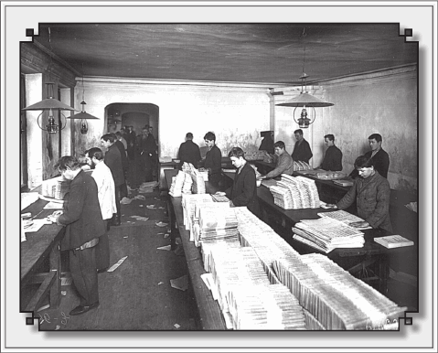 …А на снимке 1901 года перед вами газетная экспедиция «Нового времени». Для подписчиков экземпляр свежего номера складывался «бандеролью» – она как раз проходила в почтовый ящик на двери.