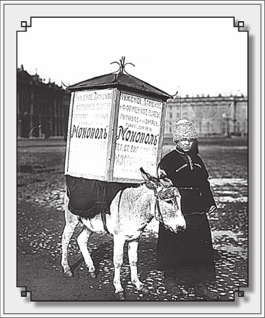 Этот хозяин ослика, встретившийся когда-то Карлу Булле на Дворцовой площади, подрабатывал, рекламируя по городу «Торг. домъ МОНОПОЛЬ» с Большого проспекта Петербургской стороны.