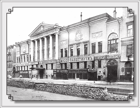 Однако давайте обратим внимание на снимок. Архитектурный облик здания – особняка Юсуповой на Невском – едва просматривается за огромными щитами: «Магазин мебели», «Полная меблировка квартир», «Кинематограф Патэ», «Музей-паноптикум», «Виддер», «Керосин, свечи, лампы», «Галантерейный и игрушечный» и прочими.