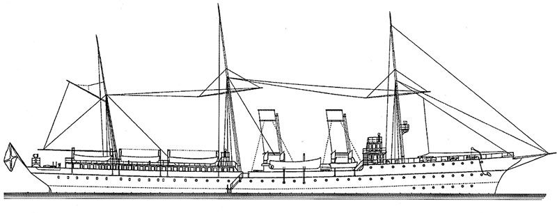 В итоге вырисовался проект «небоевого посыльного судна» водоизмещением 2500 т (в действительности, при проверке расчетов – 2595 т), с ходом 19 узлов, вооружением из четырех 75-мм орудий (по два в оконечностях), такого же числа 47-мм в средней части верхней палубы и дальностью плавания 2000 миль (при скорости 15 узлов).