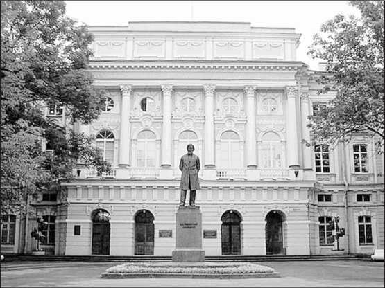 30 июня 1961 г. в парадном дворе педагогического вуза открыли памятник выдающемуся педагогу Константину Дмитриевичу Ушинскому (1824–1871). Бронзовая фигура, выполненная по модели скульптора В.В. Лишева, установлена на постамент с цоколем и базой из серого гранита, спроектирована архитектором В.И. Яковлевым. Высота фигуры – 3,5 м, высота постамента – 2 м.
