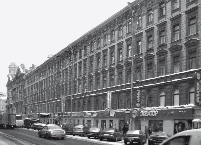 В 1905–1917 гг. здесь кроме домовладелицы М.И. Виноградовой жили: тапер и настройщик Карл Карлович Германсон и Фридрих Германович Германсон, генерал-майор Владимир Владимирович Носов, зубной врач Виктория Абрамовна Сапер, владелец конторы световой и живописной рекламы в Петербургских театрах Лазарь Давидович Сапер и Матвей Лазаревич Сапер, ксилограф и гальванопласт Александр Ионасович Уро. Георгий Иванович Давыдов содержал ресторан, перешедший к потомственному почетному гражданину Борису Ивановичу Давыдову, Иван Станиславович Лесневский – меблированные комнаты, Александр Иванович Мухин – сливочную торговлю, Анна Михайловна Ревидцова – корсетную мастерскую. Елена Филипповна Чернова – мастерскую дамских нарядов. Во дворе помещалась химическая лаборатория «Роос», Л.Д. Сапер содержал типолитографию и переплетную мастерскую.