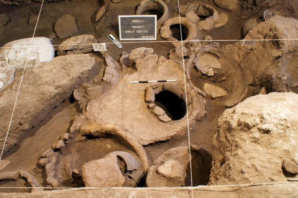 «Винный пресс (перед закупоркой) и бродильный чан (справа) обнаруженный во время раскопок в Армении. 5.500 лет». Источник: https://vstrokax.net/istoriya/drevnee-proizvodstvo-piva-v-armenii/