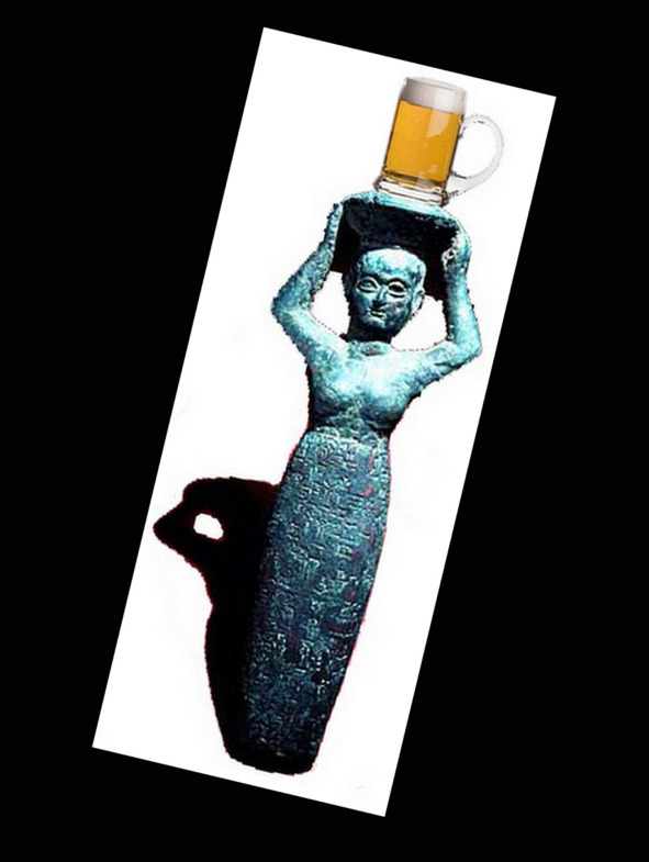 Когда-то была такая богиня. Она вышла из чистой, пресной воды. Нинкаси (Ninkasi), чье имя означает «леди, которая наполняет рот». В Древней Сумарии поклонялись богине пива и алкоголя около 6000 тысяч лет назад. Она выполняла молитвы, выпивая чудовищную порцию пива каждый день. Это богиня, которая знает, как сделать так, чтобы ее верующие были счастливы и возвращались ради большего. Умная леди!
