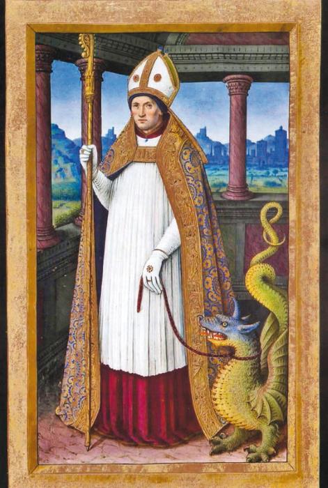 Святой Лифард, приручивший дракона. Большой часослов Анны Бретонской