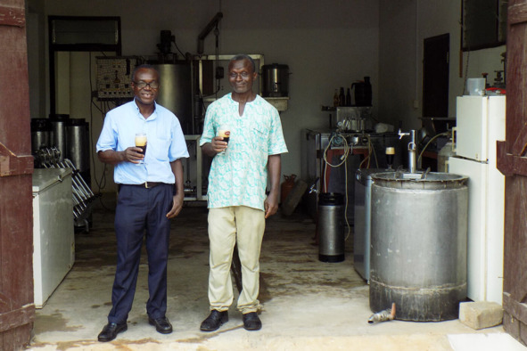 Клемент Джамех и Фаш Сойерр, находящиеся за пределами Аккры в Гане, варят пиво на внутреннем пивоваренном заводе с использованием сорго и бананов. Джамех рос в окружении пивной культуры, но большая часть его натуры находилась под влиянием Германии (страны, ранее оккупировавшей Вольту в Гане). Он изучал пивное дело в Германии, вернулся домой и работал в течение нескольких десятилетий на коммерческих пивоварнях прежде, чем отправиться в путь, занимаясь пивоварением самостоятельно.