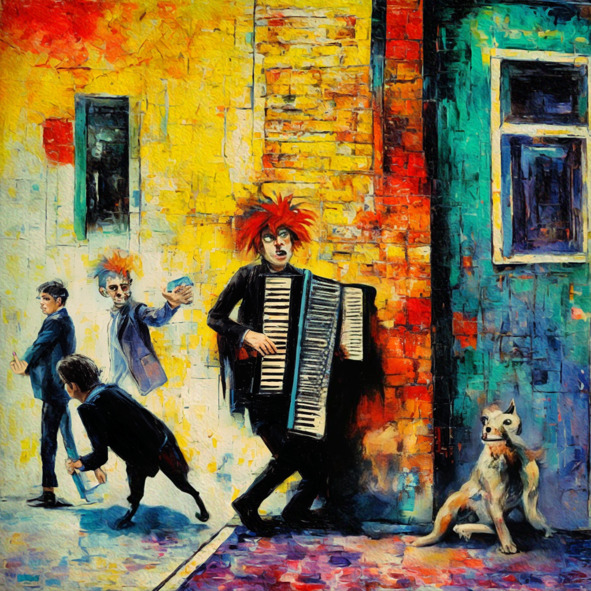 За углом играл баянМимо кассыРаспугал всех обезьянВысшей расыТо ли рок, то ли шансонНе понятноМой единственный аксонСтал квадратнымОн рубил на весь ТагилРазыгралсяТот, кто мимо проходилУдручалсяРвёт меха свои наглецзолочёныеХодим мы теперь капецУдручённые
