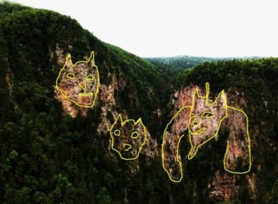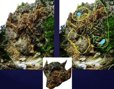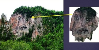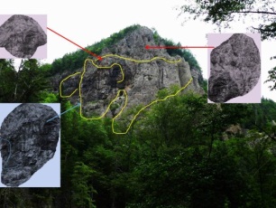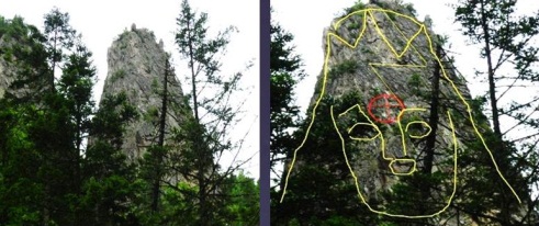 Здесь на нас смотрят морды зверей. Самую крайнюю скалу с мордой сфотографировали ближе:
