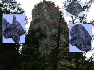 С ущелья эта скала выглядит так: