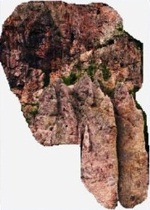 Между рогами существа, похожего на ушастую собаку или на сатира, имеющими очертания русской буквы Ш, видны чёрные маленькие символы. Я прочитала такой текст: «Ра Шира (опять о Сириусе в созвездии Большого Пса). Зикра (молитва)». А вдоль морды собаки полосой выбито бледными буквами: «Тати (отец) Ара, Тартара», и рядом я выделила его лицо.Имя его прописано прямо по лицу. Для меня это «Иван» и его храм, который находится на Сириусе. Есть на скале и много символов, часть которых закрыли растущие деревья: