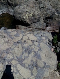 Структура камней у реки Амгу – сплав из мелких камней, скреплённых цементом голубого цвета, что доказывает искусственность их происхождения: