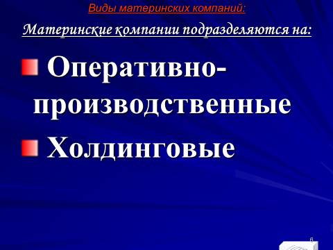 Объединения, которые сами не занимаются производственной деятельностью, а только осуществляют путем системы участия контроль за деятельностью входящих в них предприятий: