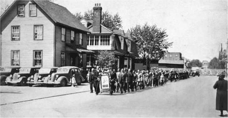 Траурная процессия украинцев по причине гибели Евгения Коновальца. Содбур (Канада), 29 мая 1938 года