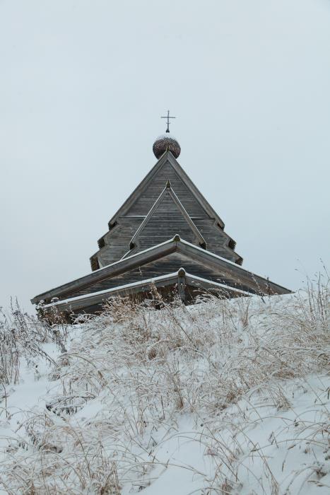 Бесспорно, Петропавловская часовня – украшение деревни, чудесный пример классических пропорций с изящной звонницей и барабаном с крохотной маковкой. Единого года постройки в источниках нет, называют и конец XVII века, и XVIII, и начало XIX века. Наиболее правдоподобной датой, как мне кажется, является вторая половина XVIII века. В советское время в ней был устроен… курятник. Во время финской оккупации исчезли иконы. Колокол еще продолжал висеть, но вскоре исчез и он. В 70-е часовню реставрировали (тогда реставрации подверглись все памятники деревянного зодчества Подпорожского кольца), а в начале нашего века перекрыли крышу, правда частично. Так и стояла она, надломленная, с покосившимся крылечком и, наверное, рухнула бы, но кажется, что призывы были услышаны, и не так давно часовня была капитально отреставрирована, фактически воссоздана вновь. Выглядит она сейчас эдакой деревянной игрушкой со светлыми еще бревнами. Но часовню удалось сохранить, и это, пожалуй, главное.