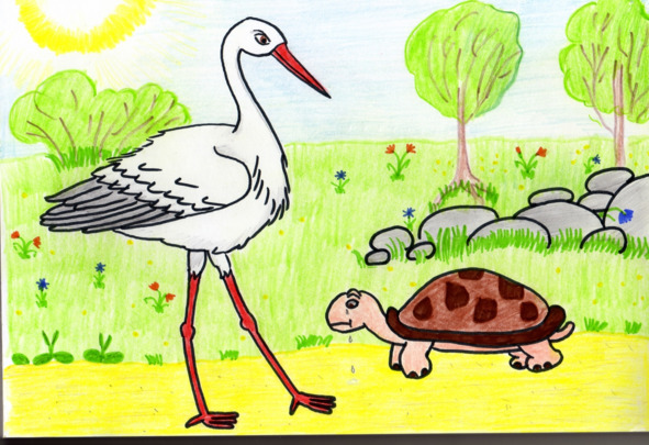 Знал аист один секрет. За то, что Черепаха помогла ему в трудную минуту, решил он тоже сделать для нее что-нибудь доброе. Говорит Аист Черепахе: