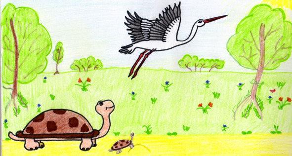 Жила на свете Черепаха. И была она одинока. У нее не было черепашек, а ей очень их хотелось иметь. Как-то раз увидела Черепаха Аиста. Он стоял возле большой груды камней и мучился оттого, что его клюв был сильно зажат в камнях. Пожалела Черепаха Аиста и решил ему помочь. Стала она протискиваться между плотными камнями. Камни немного раздвинулись, и Аист смог вытащить свой клюв. Стал Аист благодарить Черепаху и она ему в ответ только грустно улыбнулась. И тогда Аист спросил: