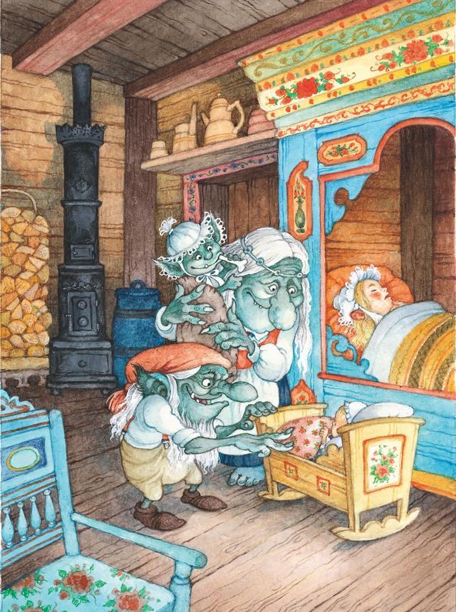 А троллиха ничего не заметила, когда проснулась, и обнаружила подмену только дома. Страшно она рассердилась.