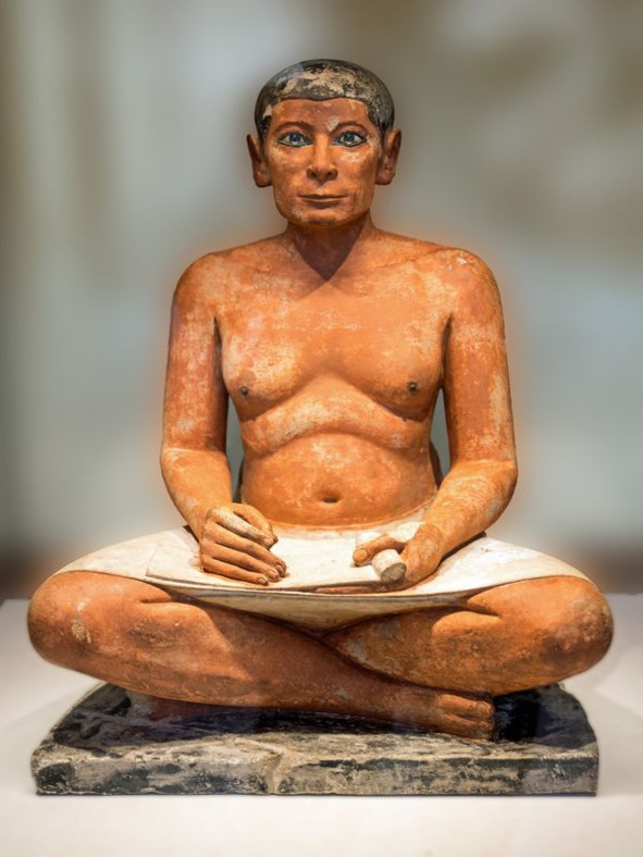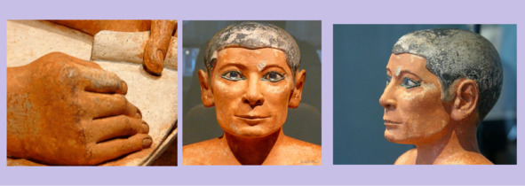 Кроме изображений правителей остались многочисленные скульптурные портреты писцов, и неудивительно: свободное владение древнеегипетским иероглифическим письмом требовало многолетнего упорного труда и ритуальной посвященности. Этот труд высоко ценился современниками.