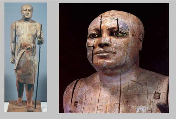 Исключительного совершенства древнеегипетские мастера достигли и в деревянной скульптуре. Лучшим образцом эпохи Древнего царства может служить статуя сановника Капера из его гробницы, известная под названием Эта скульптура передает нам непосредственное движение из мира живых в Вечность.Вся его фигура вмещает в себя достоинство и ответственность важной государственной должности. [8] «Сельский староста» .