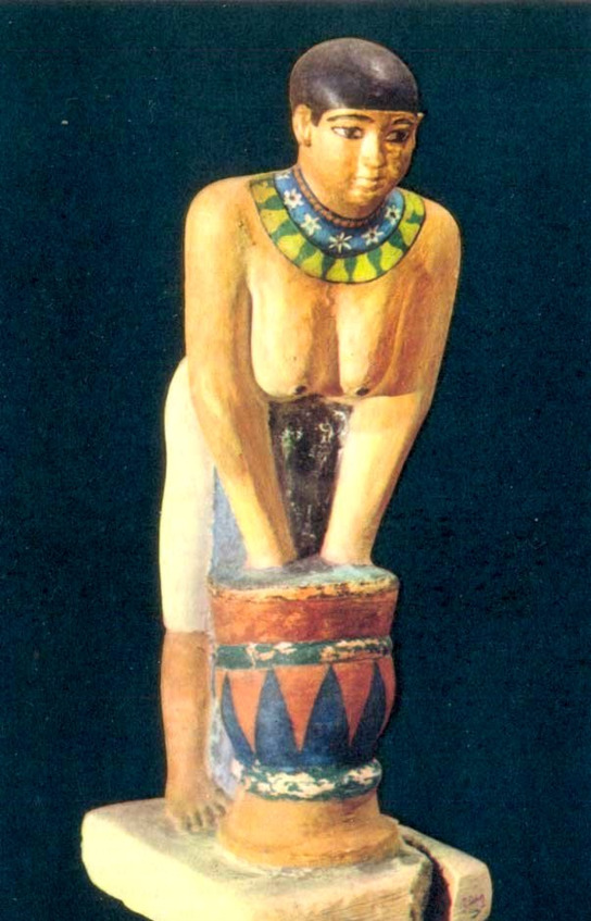 Мастерство художников Древнего царства проявилось в небольших фигурках, изображающих людей за работой. Живые позы мужчин и женщин, естественная пластика, сочетание обнаженного человеческого тела и ярких деталей украшений и предметов быта превращают статуэтку женщины, изготавливающей пиво, в подлинный шедевр мелкой пластики. Главная функция этих статуэток – обеспечить всем необходимым владельца роскошной гробницы. Ведь его душе необходимы еда и питье в загробном мире!