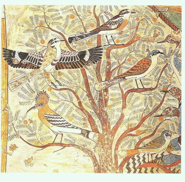 Дерево с певчими птицами. Фрагмент росписи гробницы номарха Хнумхотепа II. Источник – Википедия.