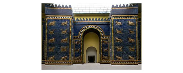 Мысленно подойдем поближе к знаменитым северным которые чудом сохранились и дают нам представление о мастерстве и художественном вкусе древних архитекторов. Напоминающие насыщенно синюю небесную арку (цвет южного неба), облицованные глазурованными кирпичами и украшенные изображениями фантастических белых и желтые драконов и быков ворота являют собой символ «небесного города». , Воротам Иштар