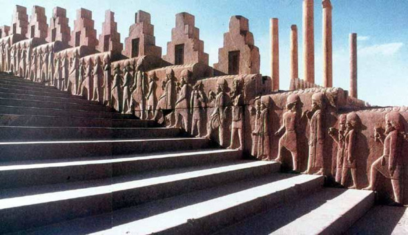 Самым выдающимся памятником эпохи Ахеменидовявляется (начало создания – 520 г. до н.э.) В его строительстве ежегодно участвовало не менее трех тысяч человек, в том числе военнопленных. Комплекс был возведен на высокой (более двенадцати метров) искусственной платформе из великолепного светлого песчаника. Весь этот ансамбль был воздвигнут с единственной целью: весной, в день празднования иранского Нового года (Ноуруза), ежегодно или, возможно, даже один раз в жизни каждого царя, при коронации, в этот город-храм собирались вельможи государства, гвардия и представители разных народов, чтобы совершить торжественный ритуал. [14] Персеполь