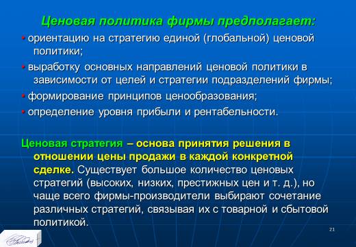 +1. ориентацию на стратегию единой (глобальной) ценовой политики;