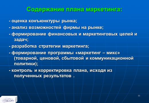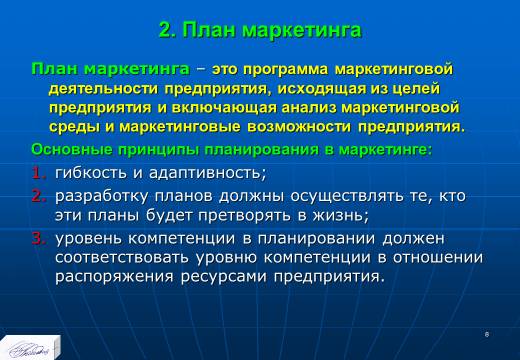 Планирование маркетинговых мероприятий. Слайды, тесты и ответы